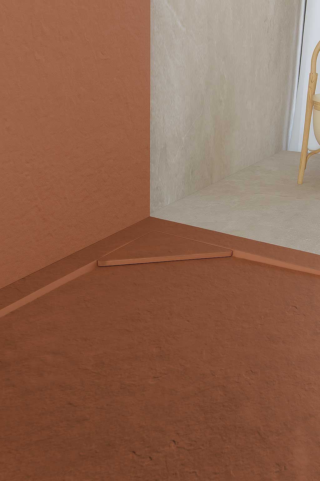 Avec la possibilité de personnalisation dans 213 couleurs du nuancier RAL et 1950 couleurs du nuancier NCS, le receveur de douche Delta atteint son expression esthétique maximale. Son cache bonde triangulaire situé en angle toute la différence avec une géométrie audacieuse et raffinée, idéale pour ceux qui souhaitent une salle de bains véritablement sur mesure. La texture Pizarra (ardoise), qui évoque la pierre naturelle du Brésil, se transforme sous n’importe quelle teinte choisie, permettant d’intégrer le receveur avec précision dans n’importe quel style décoratif ou palette de design.